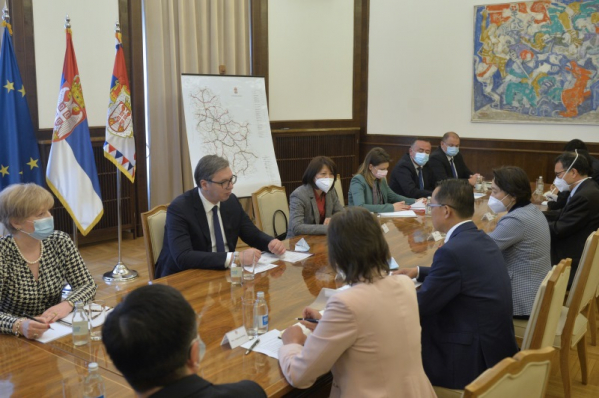 Председник Републике Србије Александар Вучић састао се данас са делегацијом компаније "Shandong Hi-Speed Group" на челу са извршним директором Менг Јаном и са амбасадорком Народне Републике Кине, Чен Бо, са којима је разговарао о текућим пројектима, као и о потенцијалима и плановима за будућу сарадњу.