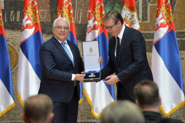 Орденом српске заставе првог степена одликовани су министар спољних послова Мађарске Петер Сијарто и лидер Демократског фронта Андрија Мандић.