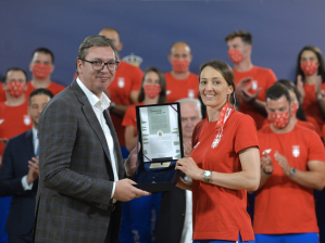 Председник Александар Вучић примио је данас спортисте, чланове олимпијског тима Србије и представнике спортских савеза, тренере и селекторе и пожелео им много среће на Олимпијским играма, да остану што дуже у Јапану и да се у земљу врате успешни.